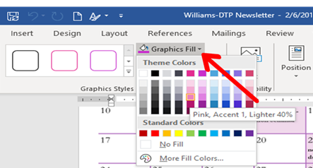 In the graphics styles block, click on the graphics fill drop down menu as shown below.