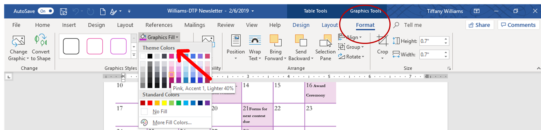 Manipulating pictures was the fun part, but does require some familiarity with the ribbon. However, once you get the hang of it, manipulating shapes and pictures are easy. Here is an example of how I added a smiley face to my ESL newsletter and changed the color.